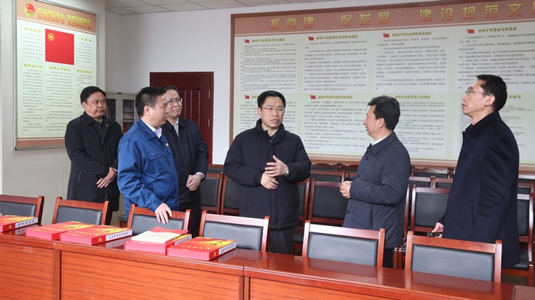 李元平先后深入科技中心、停機坪、尾礦庫、1190主平硐口、磨浮車間、員工公寓、黨員活動室調研。在詳細了解了企業生產經營情況、安全環保等工作后,李元平重點檢查了企業黨建工作,聽取了陪同人員的匯報。